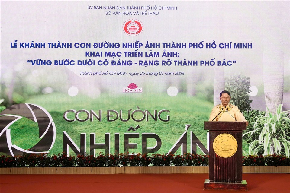 Tối 25/1/2026, TP Hồ Chí Minh chính thức khánh thành Con đường Nhiếp ảnh TP.HCM trên trục đường Đồng Khởi và tại Công viên Chi Lăng, đồng thời ra mắt Nhà Triển lãm Nghệ thuật Đương đại (158 Đồng Khởi). Đây là công trình văn hóa nghệ thuật mới, lần đầu tiên được triển khai tại TP.HCM, chào mừng thành công Đại hội đại biểu toàn quốc lần thứ XIV của Đảng.